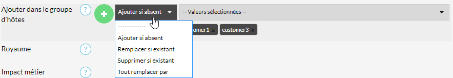 | Ajouter si absent | Permets d'ajouter une ou plusieurs valeurs à la liste des valeurs déjà présentes Une valeur déjà présente ne sera pas rajoutée en double. |