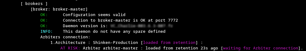 - Les Arbiter MASTER et SPARE sont en train d'envoyer des configurations à d'autres démons, et ne peuvent donc pas contacter ce démon pour l'instant.