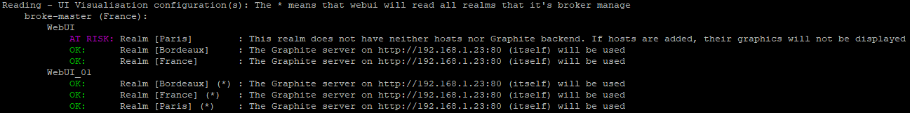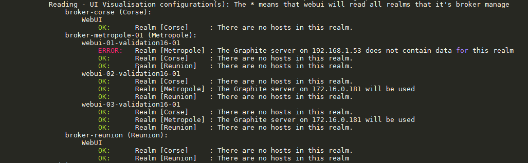 Exemple : Le broker broker-metropole-01 gère le royaume Metropole et ses deux sous-royaume Reunion et Corse. Dans la définition de la webui webui-02-validation16-01, le royaume Reunion est manquant. On ne pourra donc pas accéder aux métriques sur les hôtes du royaume Reunion sur la webui webui-02-validation16-01