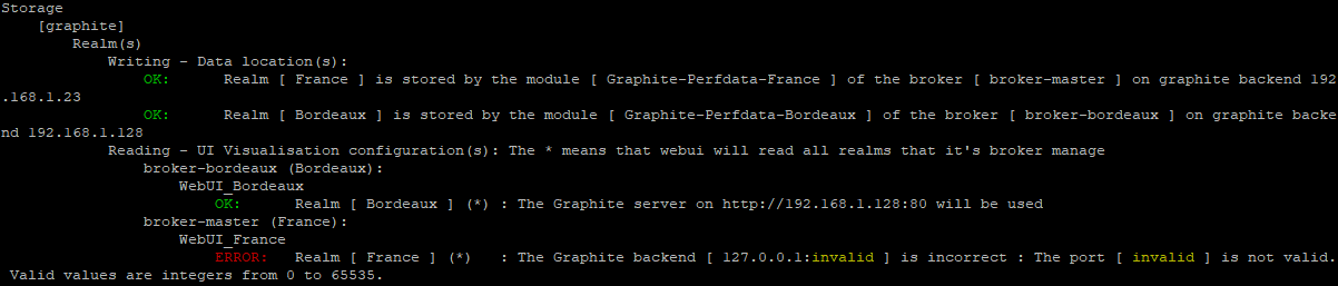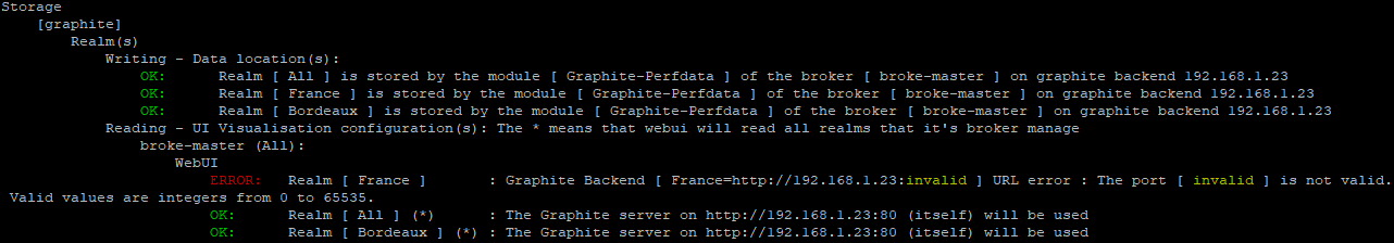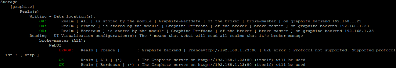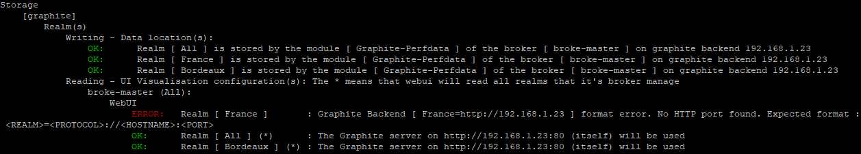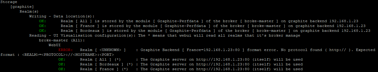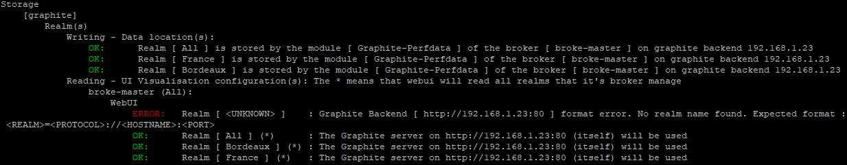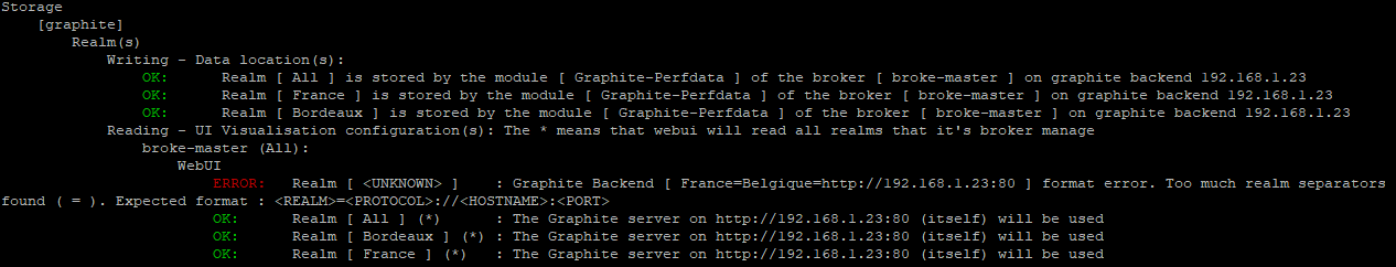 - Le royaume n'est pas un sous royaume, il faut enlever le royaume non géré du module webui. Il est possible de spécifier le caractère * dans la définition des backend afin de dire que ce module webui prendra tous les royaumes et sous-royaumes du broker vers le même graphite_backend