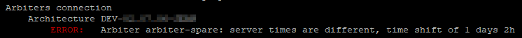 Si le serveur n'est pas à la même heure que le serveur Arbiter ( qui fait office de référence ), une erreur CRITICAL sera levée, car des temps différents sur les différents serveurs vont avoir des effets désastreux sur la cohérence des données de supervision.