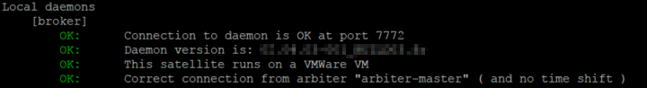 Si c'est le cas, une ligne sera ajoutée dans la sortie du "shinken-healthcheck" et précisera que le satellite fonctionne sur une architecture VMWare.