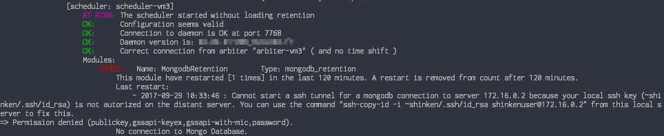 Les erreurs de communication peuvent ne pas être graves et ne pas avoir d'incidence sur l'architecture Shinken. Cependant, s'il y a des erreurs, en cas de doutes sur l'origine de ces problèmes de communication, par prévention, envoyer le log pour analyse au support Shinken.