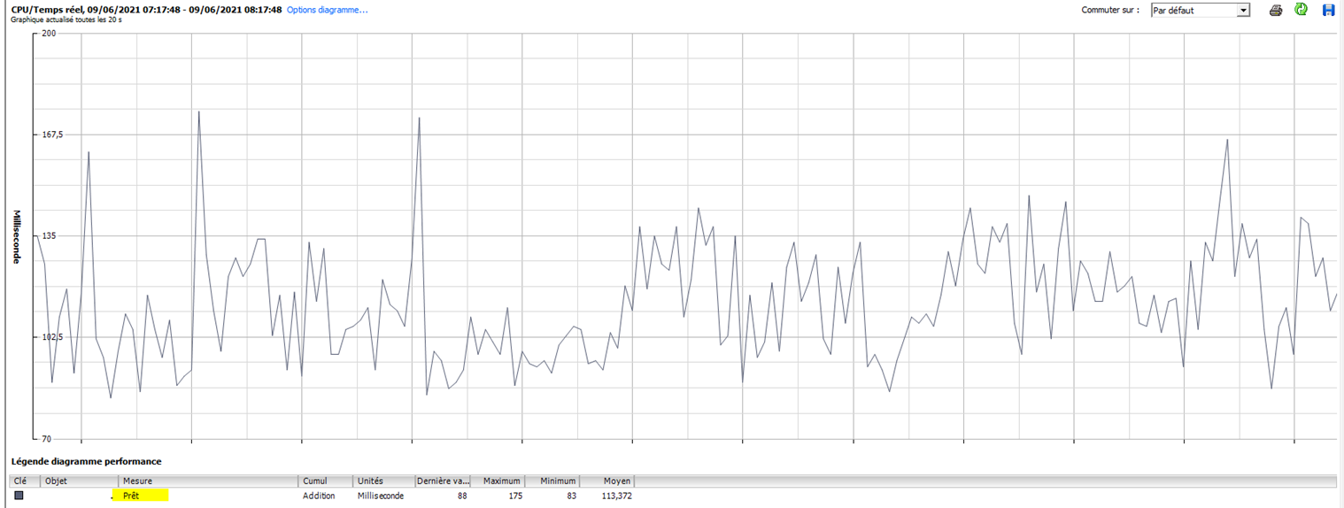 Indicateur ready dans VSphere, en ms écoulée sur 20s