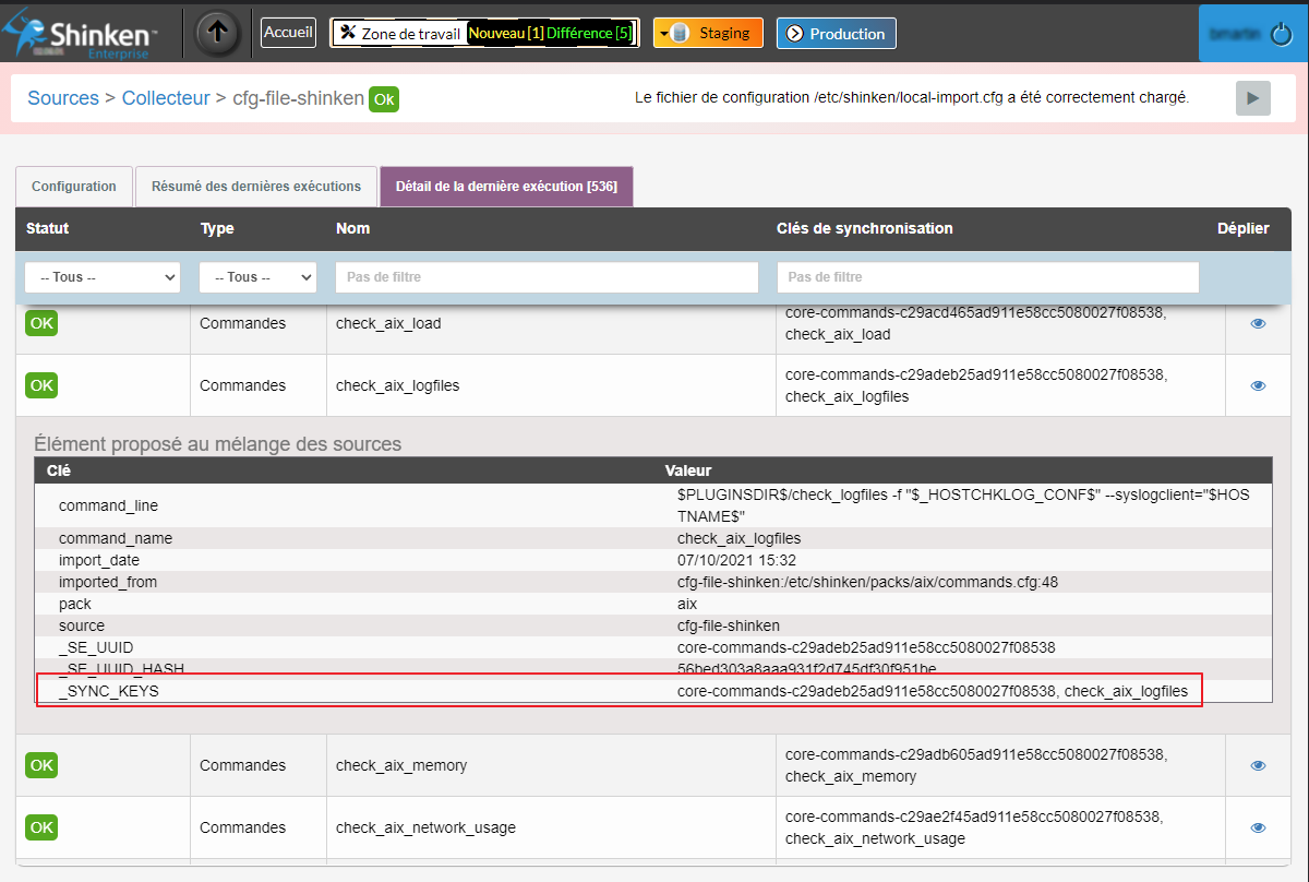 Les clés de synchronisation sont visible depuis l'onglet Détail de la dernière exécution dans la page de configuration des sources