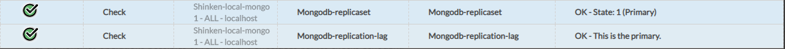 Voici un aperçu du résultat des checks concernant la réplication de MongoDB, pour un nœud primaire et pour un nœud secondaire :