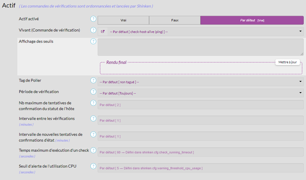 - Si la vérification est passive : de la valeur de la propriété "Seuil d'expiration des états reçus des outils externes" (clé d'import : freshness_threshold). Par défaut, si aucune valeur n'est attribuée, le statut dure jusqu'au prochain changement d'état.