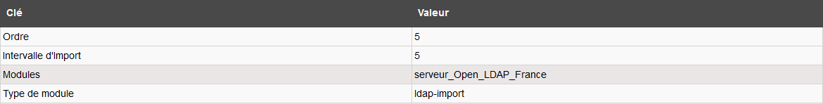 | username | Utilisateur utilisé pour la connexion au serveur Open LDAP. Il peut s'agir d'un compte en lecteur seule. |