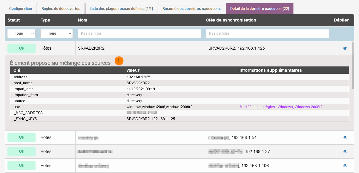 On peut y retrouver le résultat des champs de la source associé à des propriétés ou des données Shinken ( 1 ).