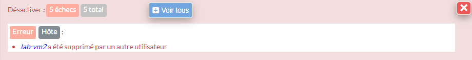 Le message d'erreur affiche l'erreur sur 1 élément, mais si d'autres éléments sont en erreurs, alors un bouton Voir tous apparaît à côté du compteur d'éléments en échecs.
