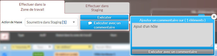 Cette action peut être effectuée avec un commentaire à l'aide du bouton Exécuter avec un commentaire. Le commentaire sera ajouté sur tous les éléments sélectionnés.