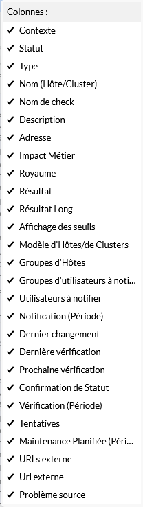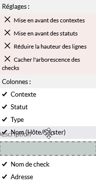 - Offre la possibilité de filtrer la liste sur des hôtes, clusters et des checks sans prendre en compte l'arborescence.
