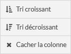 - Un clic sur l'entête de la colonne permet de trier par ordre croissant.