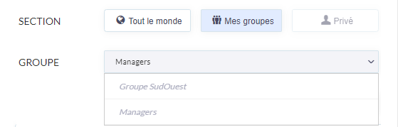 GROUPE : ( affiché que si le champ SECTION est sur "Mes groupes" ).