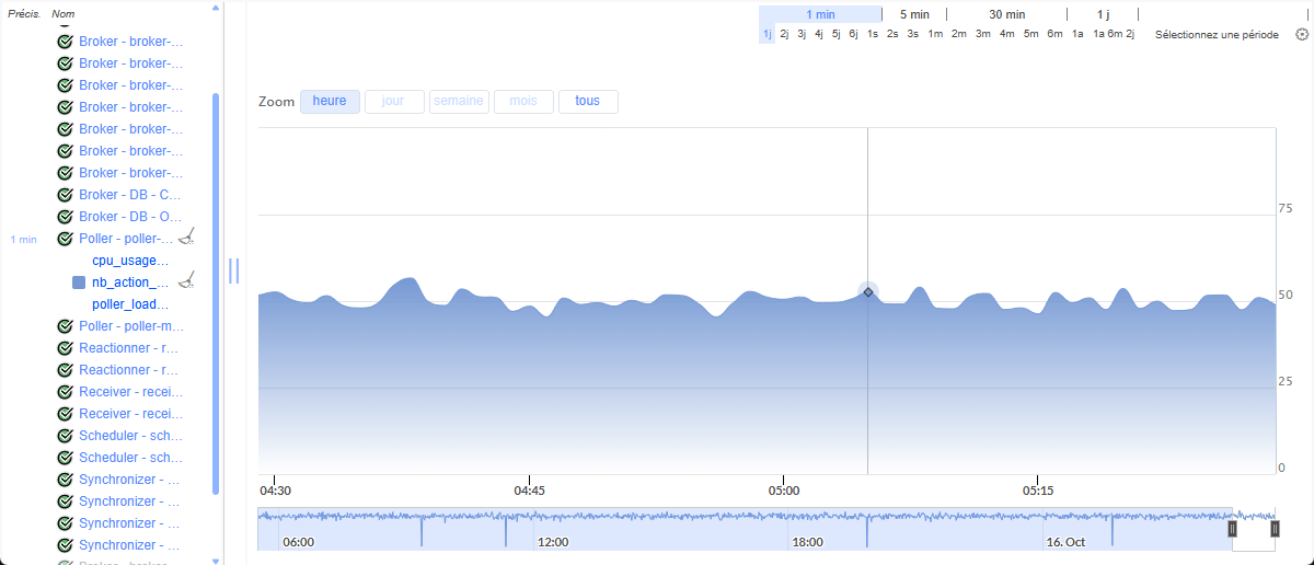 Le check "Poller - Performance" renvoie à chaque vérification des données sur l'utilisation du processeur, sa charge et le nombre de check qu'il arrive à effectuer.