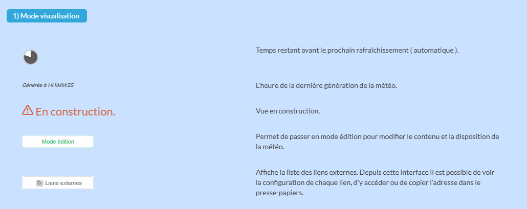 Cette page d'aide ne sera disponible uniquement que pour les utilisateurs ayant le droit de modifier les météos (Administrateurs Shinken et utilisateur possédant le droit de modification)