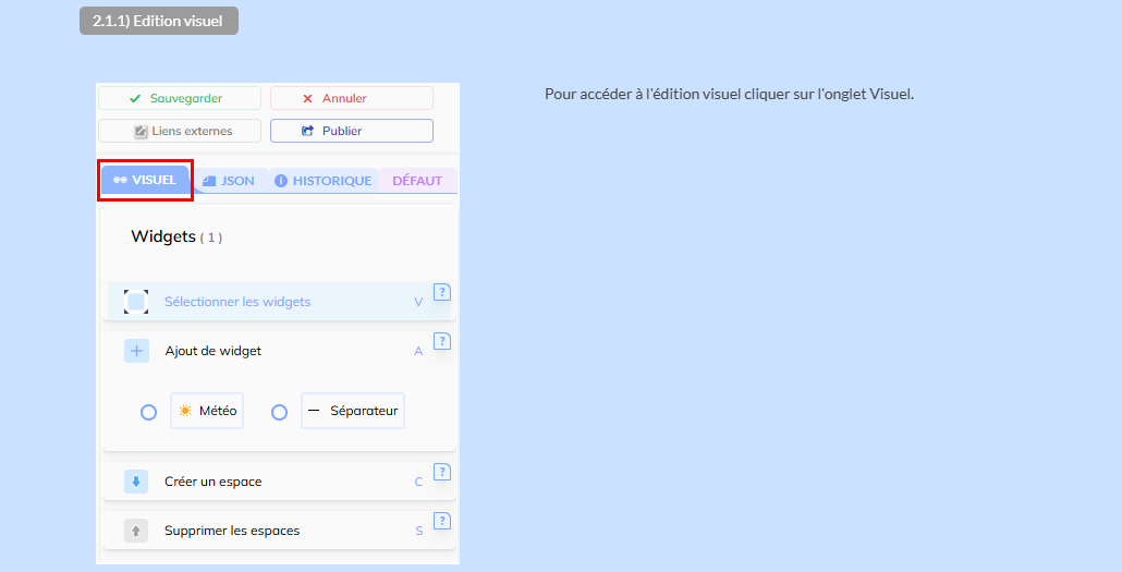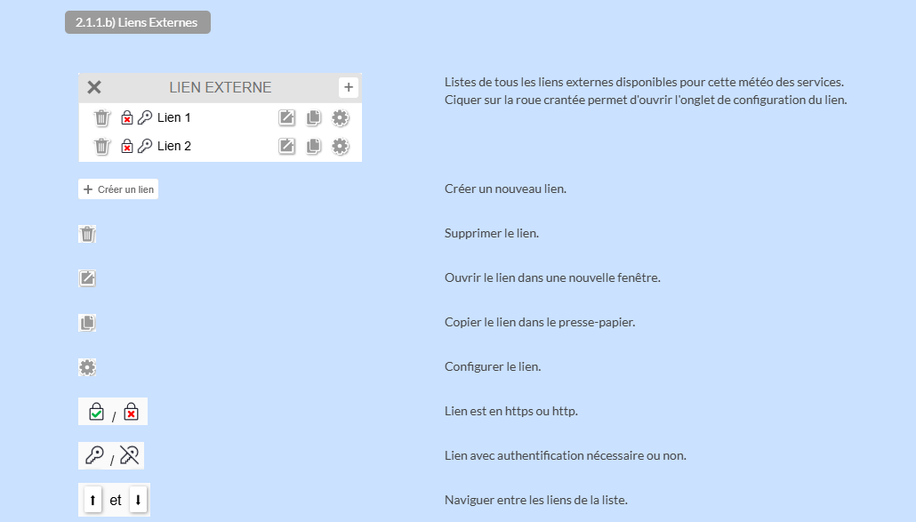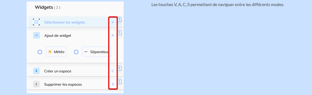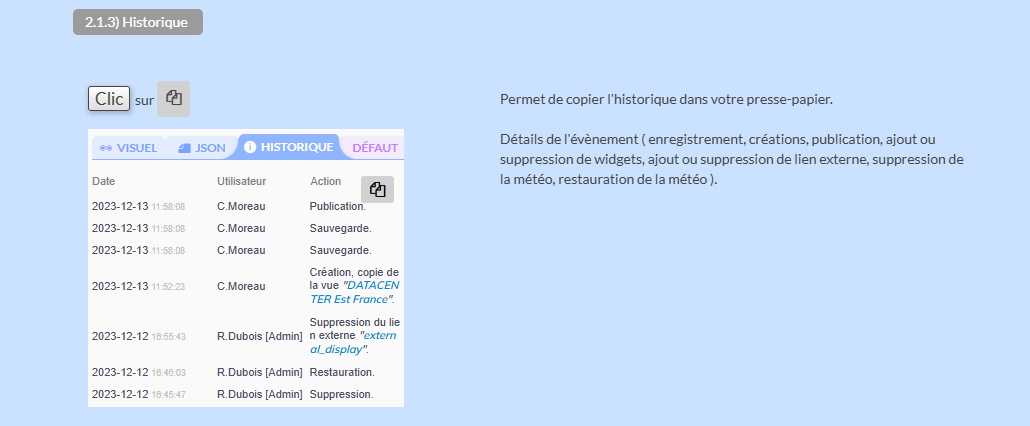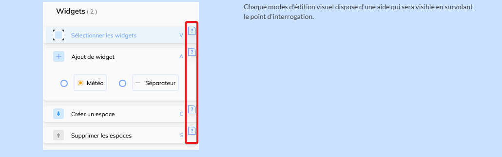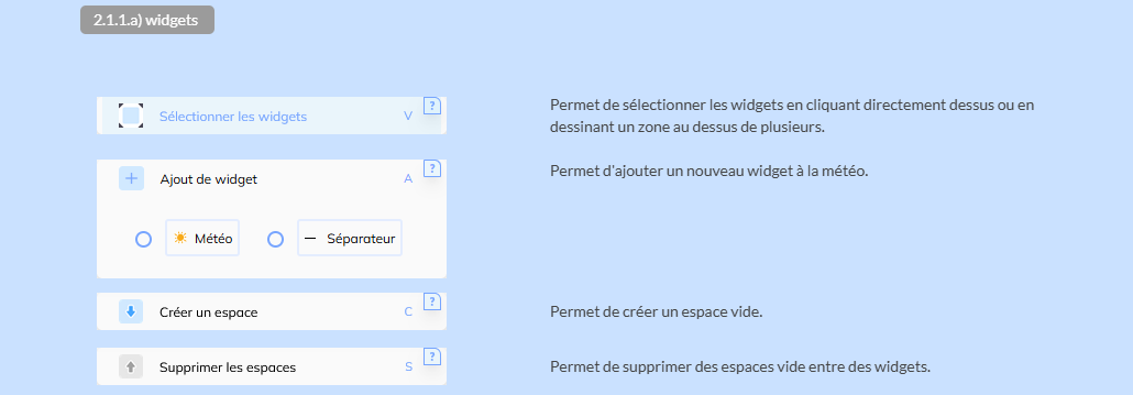 Pour aider les utilisateurs à modifier et organiser leurs météos des services, un pop-up d'aide décrivant les différentes fonctionnalités est disponible dans la page des météos des services.