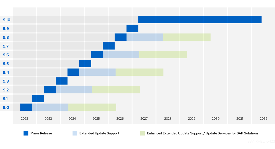 | Red Hat | 7.2 => 7.9 | 8.5 => 8.10 | 9.7 |