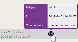 Pour afficher les informations d'une prise en compte, il faut à l'aide de la souris survoler le contexte pour afficher l'info bulle contenant le nom de l'auteur, le commentaire et la date.