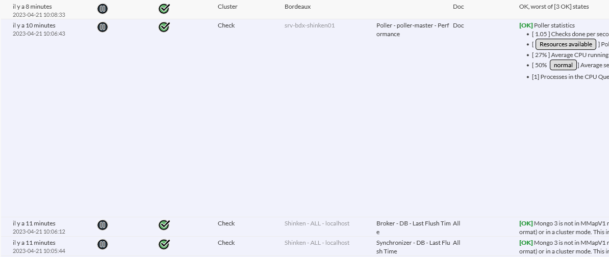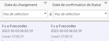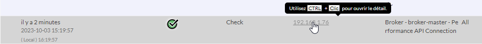 S'il y a un décalage horaire entre l'heure du navigateur et l'heure du serveur utilisé par le démon Broker, l'heure affichée sera en priorité celle du serveur, mais un second affichage apparaîtra pour indiquer la correspondance en heure locale ( affiché en gris ).