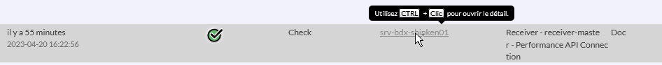 L'ouverture de l'Onglet Historique/SLA du volet détail à partir des contextes s'effectue en effectuant la combinaison de touche Ctrl + Clic ou Command + clic ( Mac os ) sur le nom de l'hôte ou du cluster.