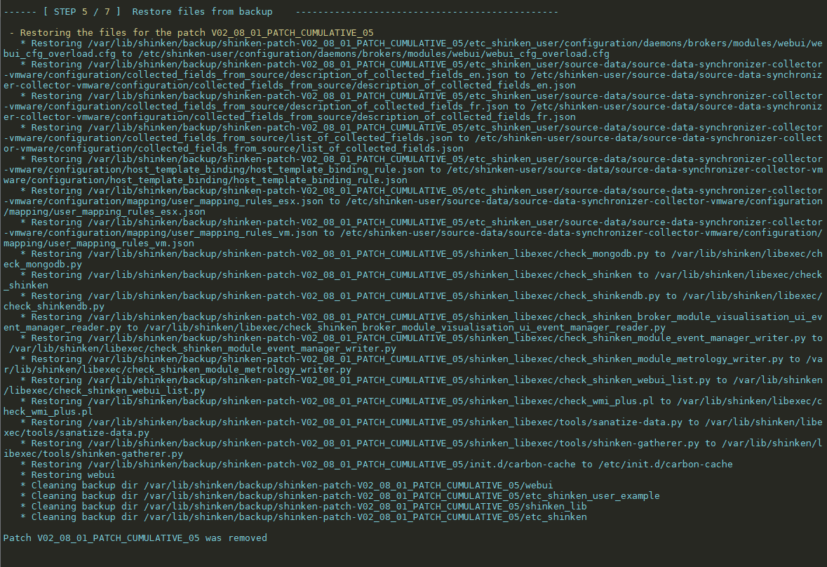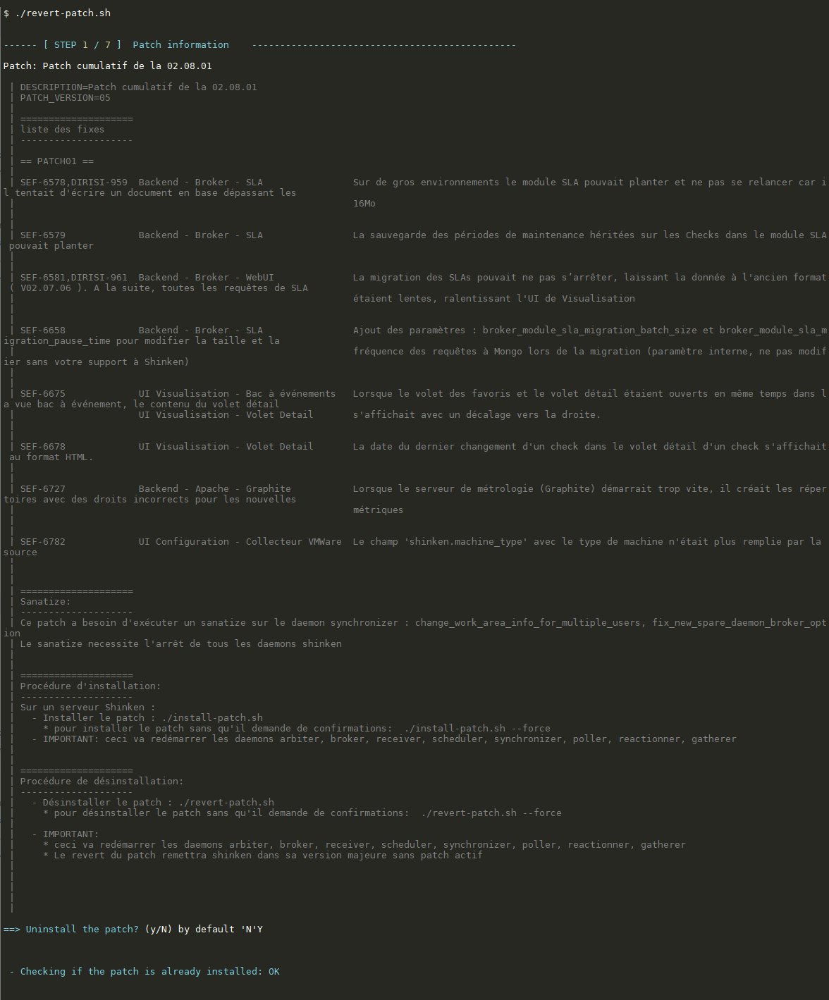 $ cd shinken-enterprise_V02.08.01-CumulativePatch-19_FR_Linux_FULL_2022-02-03/ $ ./revert-patch.sh