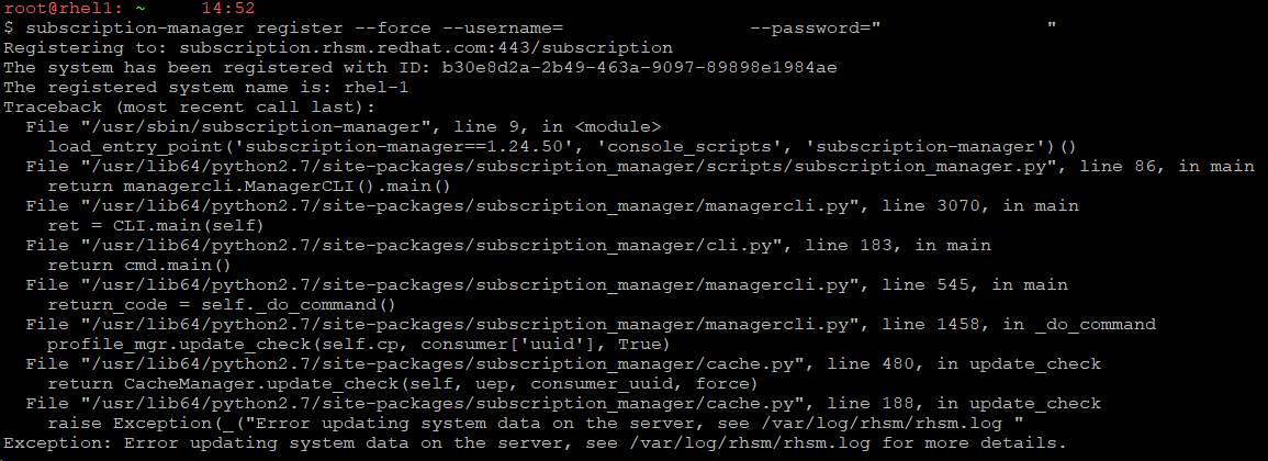 Notez que vous devez lui fournir de quoi s'authentifier sur votre compte RedHat, ce dernier devant avoir une licence pour RedHat 7.9 de disponible: