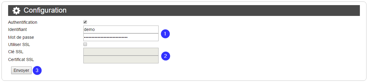 - Cette authentification permet de limiter les connexions aux personnes qui connaissent le couple identifiant/mot de passe. En revanche, sans la deuxième option (SSL), ces données transiteront en clair sur le réseau.