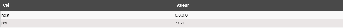 | host | host | Interface réseau sur laquelle l'API REST va écouter. Il n'est possible de mettre qu'une seule valeur. Remarque : L'adresse 0.0.0.0 correspond à toutes les interfaces réseau. |