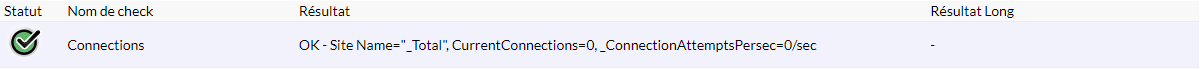 Le check Connections récupère le nombre de connexions différentes faites sur le serveur web IIS. Comme nous ne pouvons préétablir une corrélation entre le nombre de connexions et le bon fonctionnement du serveur, nous avons choisi de laisser le check en OK.