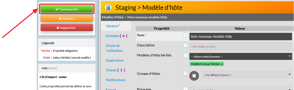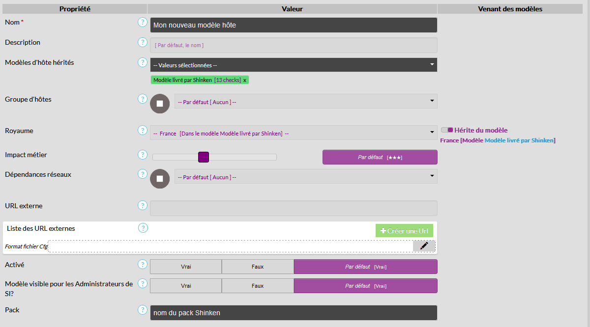 - Choisir le modèle d'hôte dont vous avez besoin dans le pack de votre choix livré par Shinken ( propriété : Modèles d'hôte hérités ).
