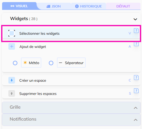 - Sélection d'un widget :