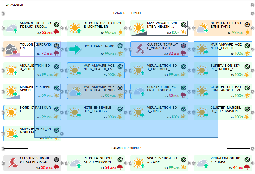 - Après avoir relâché le clic, tous les widgets inclus dans la zone verront leur état de sélection inversé :
