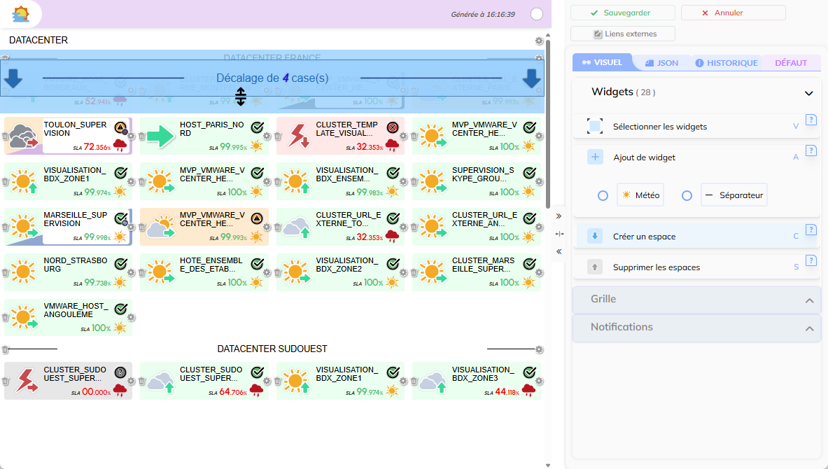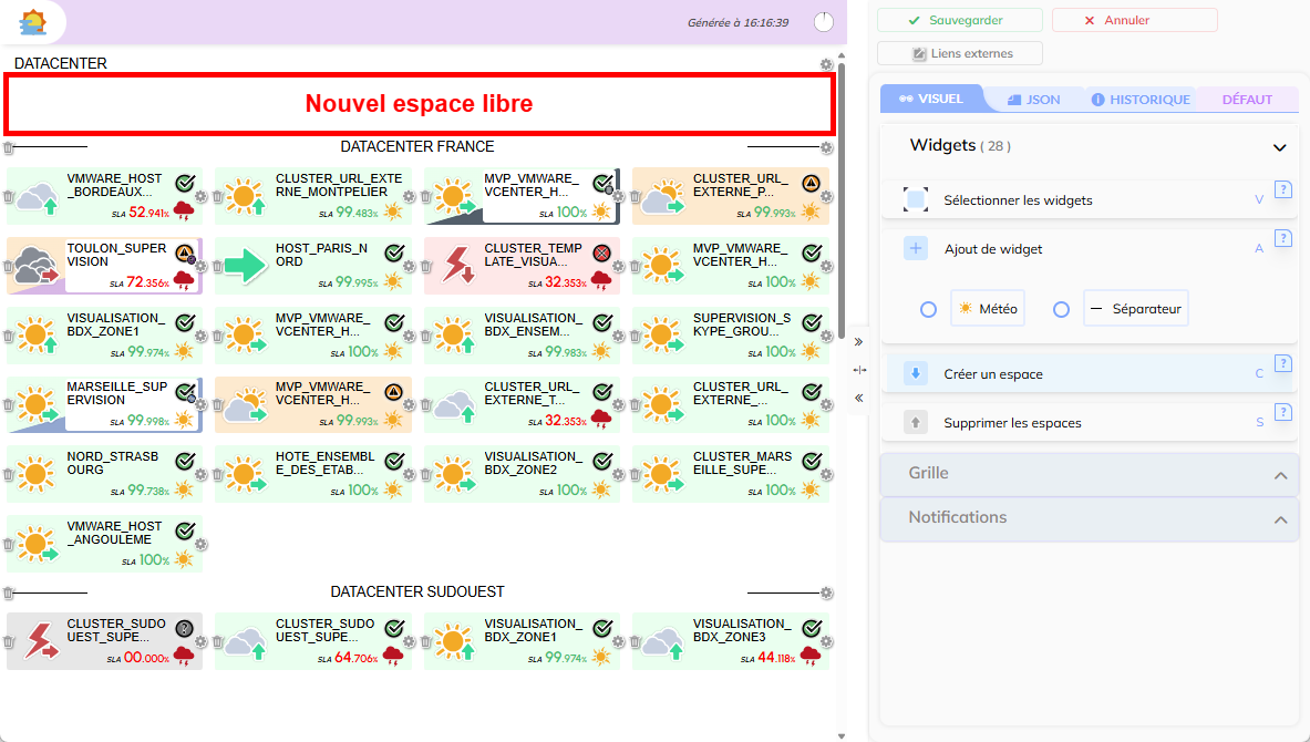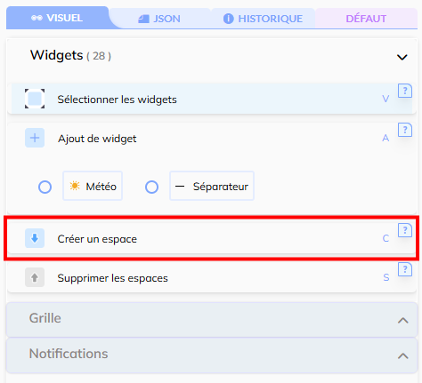Il est possible d'ajouter ou de supprimer des espaces ( ligne entière ) dans la grille entre les widgets pour faciliter le placement des widgets :