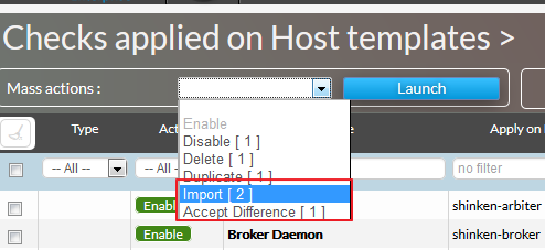 Pour appliquer ces différences dans Staging, il suffit alors de sélectionner les éléments en New ou en Difference, puis de sélectionner l'Action de masse adéquat.