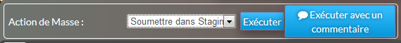 Le bouton "Exécuter avec un commentaire" est activé pour les actions de soumission et permet d'associer un commentaire aux éléments sélectionnés.