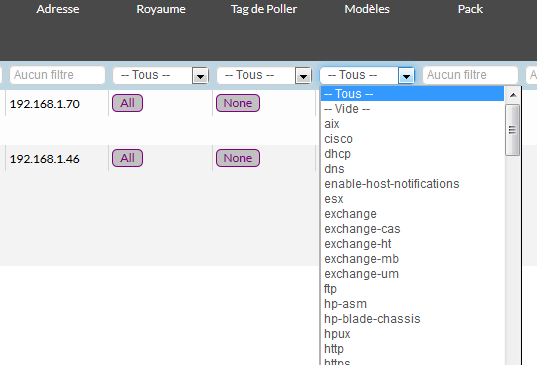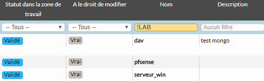 Un exemple de filtre pour ne pas afficher les hôtes qui contiennent la chaîne LAB :