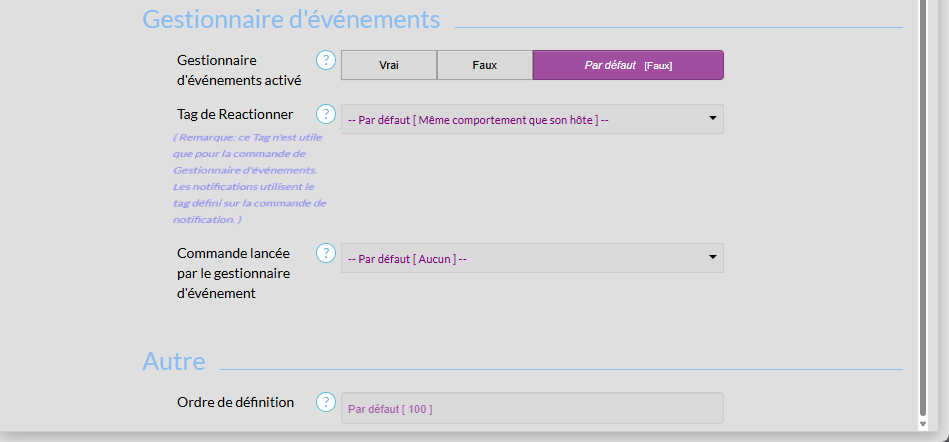 Si la propriété est:- Vrai: va lancer la commande quand nécessaire