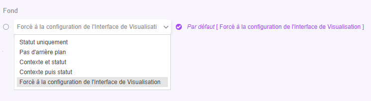 Permet de choisir une valeur dans une liste de valeurs prédéfinies ou de sélectionner la valeur par défaut ( voir la page Configurer un widget - Édition visuelle - Météo ).