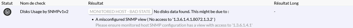 Le serveur SNMP doit être configuré pour autoriser la récupération des informations des disques.