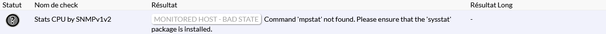 Ce check dépend de la commande mpstat, qui fait partie du paquet sysstat. Assurez-vous que ce paquet soit installé pour que la commande fonctionne correctement.