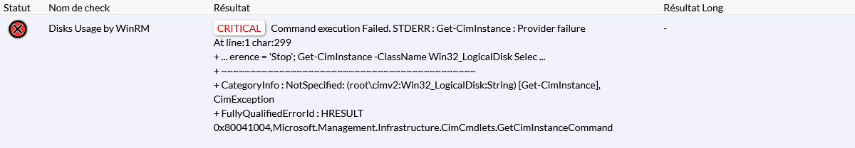 Note : ce problème peut également provenir d’un mauvais port configuré, d’un port fermé sur l’hôte supervisé, ou si le service WinRM est stoppé sur l'hôte supervisé.