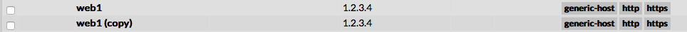 | To duplicate a host, first go on the Main page listing all hosts, then select a host by clicking on the check box placed on the first column. |  |
