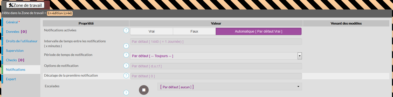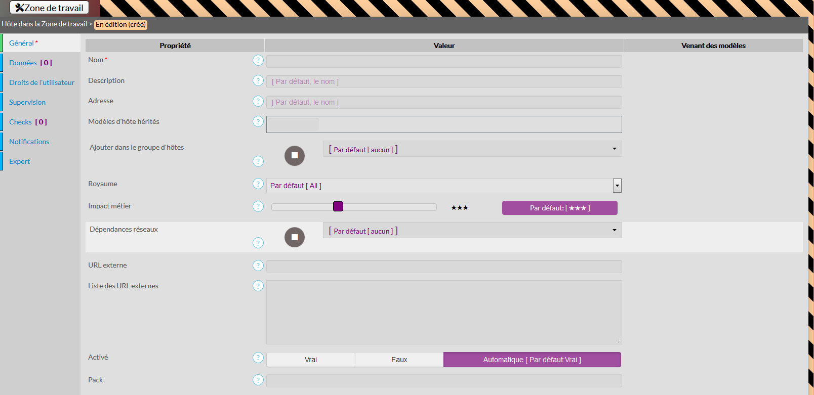 Cet onglet résume quels sont les Checks qui seront appliqués à l'hôte, et leur provenance (venant de quel modèle d'hôte, ou directement appliqué à l'hôte).