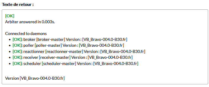 Sous les boutons d'actions, le texte de retour est affiché, il représente le résultat court du check.