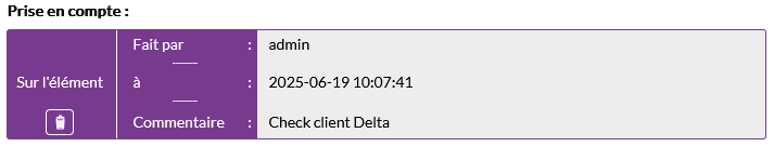 Si des prises en compte sont effectuées sur le check, elles sont affichées de la manière suivante.