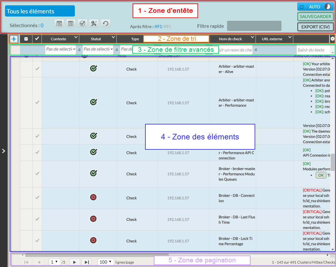 • It contains the list name, mass actions, refresh management buttons, CSV export of the list, and the quick filter.