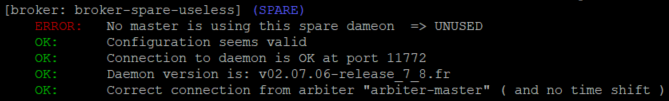 Dans ce cas, une erreur est affichée dans le shinken-healthcheck indiquant le conflit d'Arbiter.