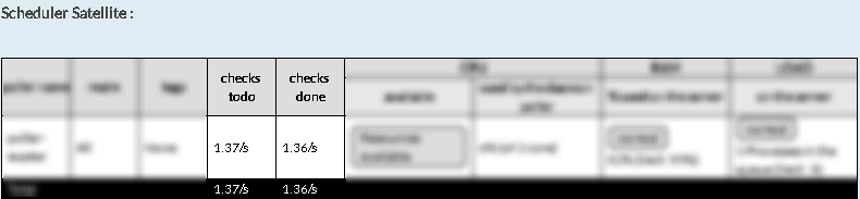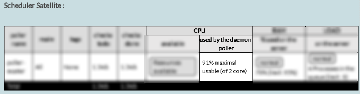 Le démon Scheduler va effectuer tout le travail d'ordonnancement, et c'est à lui que vont s'adresser ( en autres ) les démons Poller et Reactionner pour récupérer les checks et les notifications à effectuer. Son bon fonctionnement est donc vital au bon fonctionnement de votre architecture Shinken. Aussi, pour dimensionner correctement une installation Shinken Entreprise, il est important de pouvoir visualiser combien de checks ses Poller satellites peuvent traiter, ainsi que leurs utilisations CPU et RAM.
