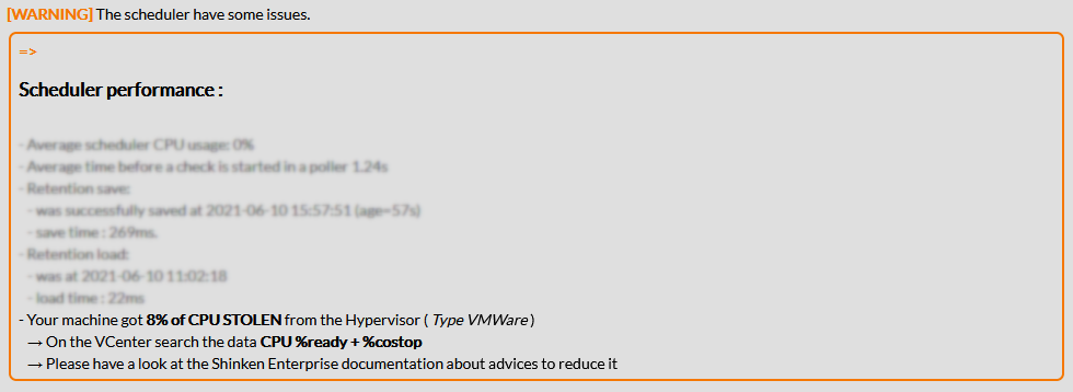 Scheduler - $KEY$ - Running Well | cpu_stolen__vmware__percent_ready | ( Seulement si le démon est situé sur une VM VMWare ) Valeur de l'indicateur VMWare %ready ( temps de blocage de la VM avant d'avoir accès à ses VCpu, donc temps perdu du point de vue de la VM ) |